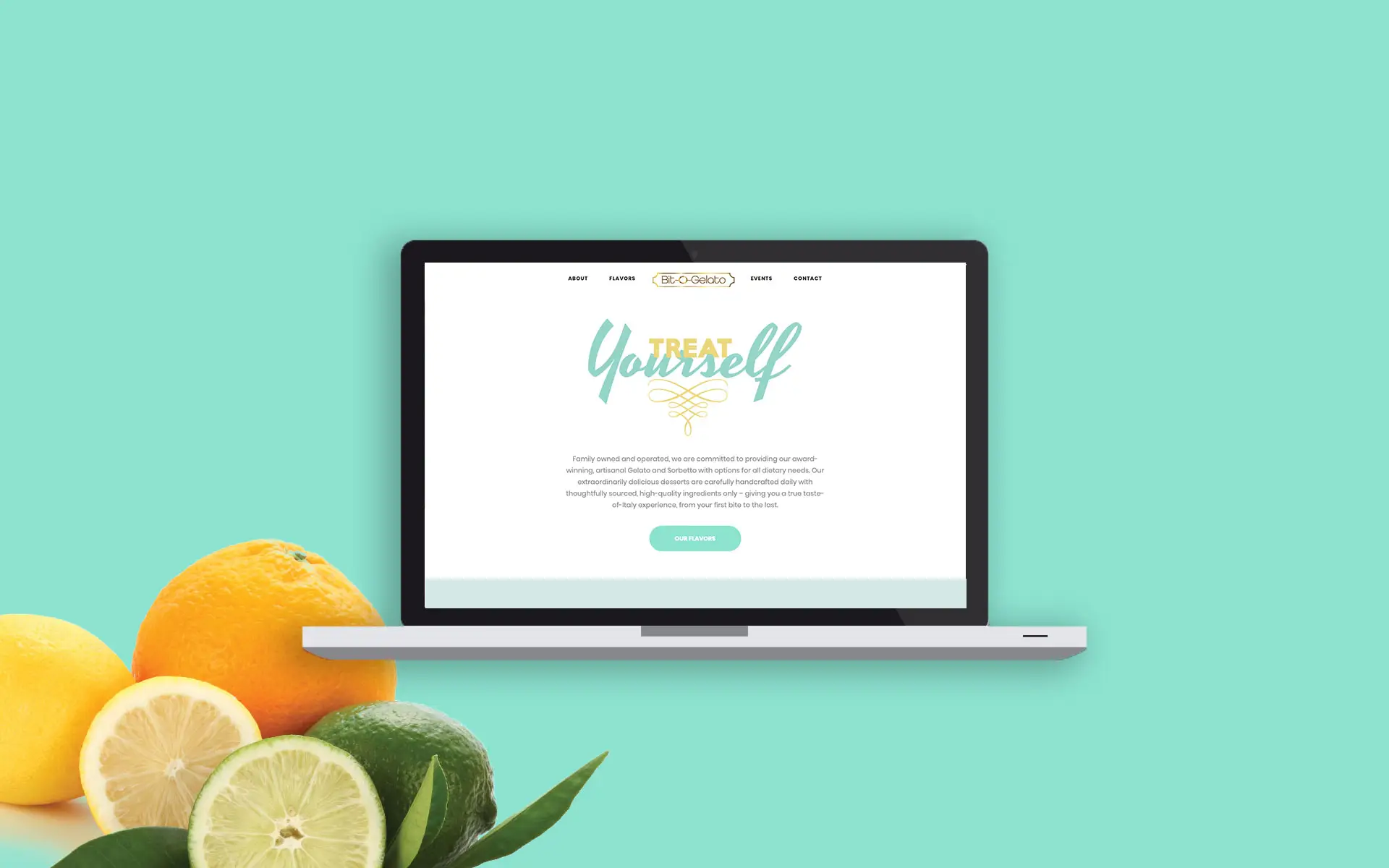 A single visit to the homepage introduces Bit-O-Gelato’s unique take on frozen desserts. The company story, flavors, event schedule, and information are readily available and beautifully enhanced by a unique, custom design.